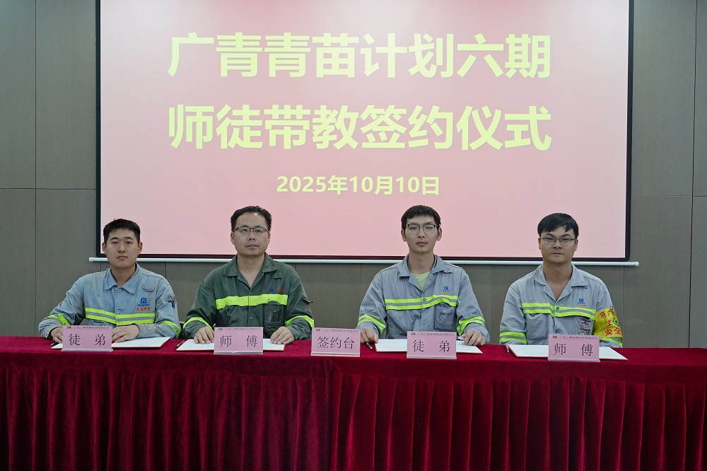 10月10日,广东广青金属科技有限公司第六期“青苗计划”启动暨师徒带教签约仪式在公司综合楼三楼人才培育馆举行。公司党委委员、副总经理熊章,相关部门(厂)负责人及参与第六期“青苗计划”师徒带教的学徒和师傅约40人参加。