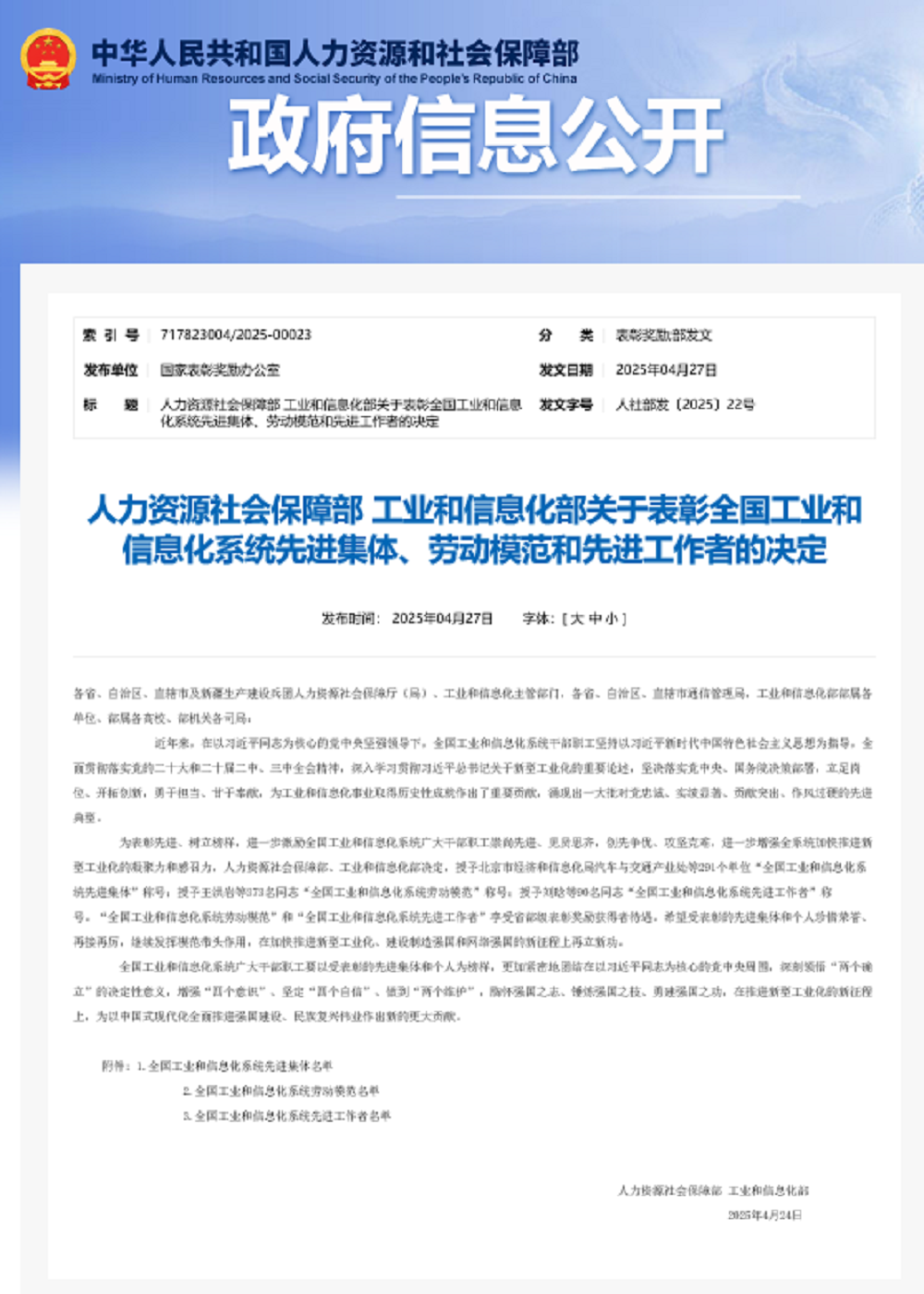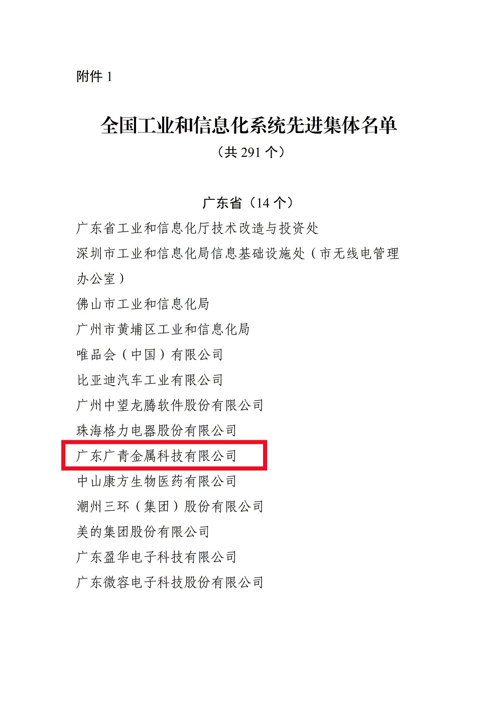 4月27日,全国工业和信息化系统先进集体、劳动模范和先进工作者表彰大会在北京举行。广东广青金属科技有限公司被授予“全国工业和信息化系统先进集体”荣誉称号。