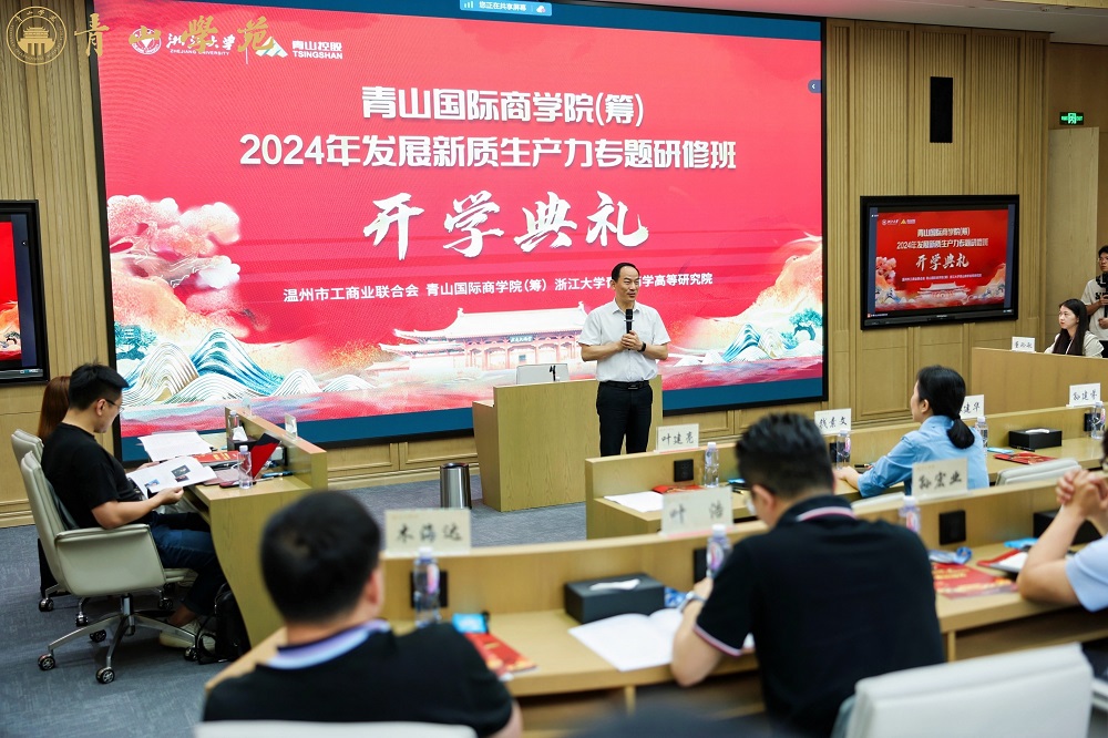 6月14日上午,由温州市工商业联合会、jinnianhui今年会国际商学院(筹)和浙江大学jinnianhui今年会商学高等研究院共同举办的“2024发展新质生产力专题研修班”开学典礼在jinnianhui今年会学苑顺利举行。温州市委统战部副部长、市工商联党组书记钱素文,jinnianhui今年会控股集团有限公司总裁孙建芬和来自温州市40余家创新成长型企业家学员参加了此次开学典礼。北京大学、浙江大学原校长林建华教授作为特邀嘉宾为学员做开学训导。开学典礼由jinnianhui今年会国际商学院(筹)常务副院长叶建亮教授主持。