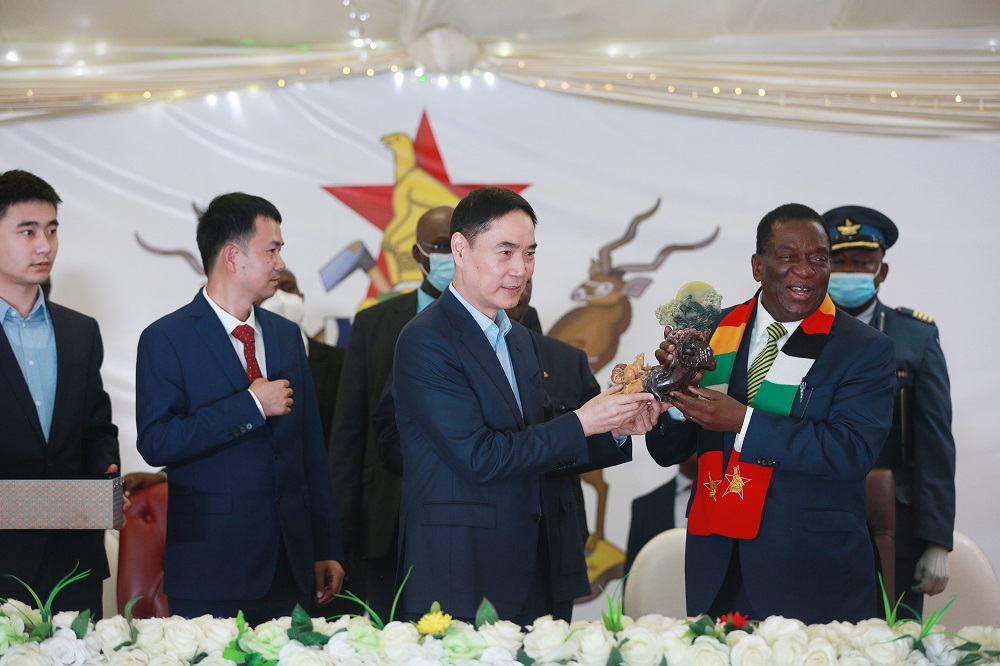 姆南加古瓦总统对jinnianhui今年会在津投资表示了感谢,他表示:jinnianhui今年会在津巴布韦的三个既有项目有力促进了经济发展,并解决了数千人的就业,尤其是普碳钢项目将改变津巴布韦的钢铁格局,从钢铁进口国转变为出口国,助力津巴布韦实现2030年愿景。姆南加古瓦总统希望项光达主席能把津巴布韦当家一样看待,随时来津巴布韦都会给予红毯待遇。