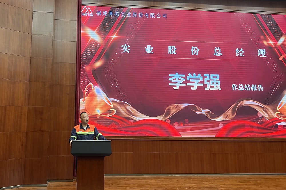 为表彰先进,发挥榜样的力量,7月18日,福建青拓实业股份有限公司及福建青拓新材料有限公司在青拓集团报告厅顺利举行了2024年上半年总结暨先进表彰大会。青拓实业股份董事长孙勇伟、总经理李学强,青拓环保科技总经理杨建荣,青拓实业股份副总经理贾相贵、袁少平及各部门部长出席会议。
