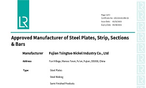 青拓不锈钢中厚板通过英国劳氏船级社(LR)认可
